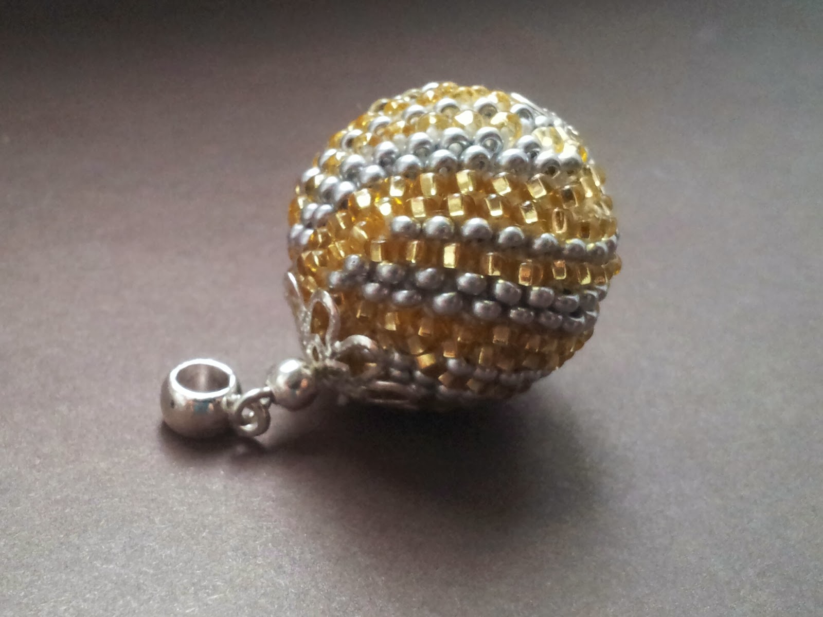 Ważkę wykonałam z Toho 15/0 w kolorach Opaque White, Silver Lined Teal, Metallic Grape, Opaque Navy Blue oraz Opaque Frosted Jet. Oczy ważki to FP 3 Jest AB.